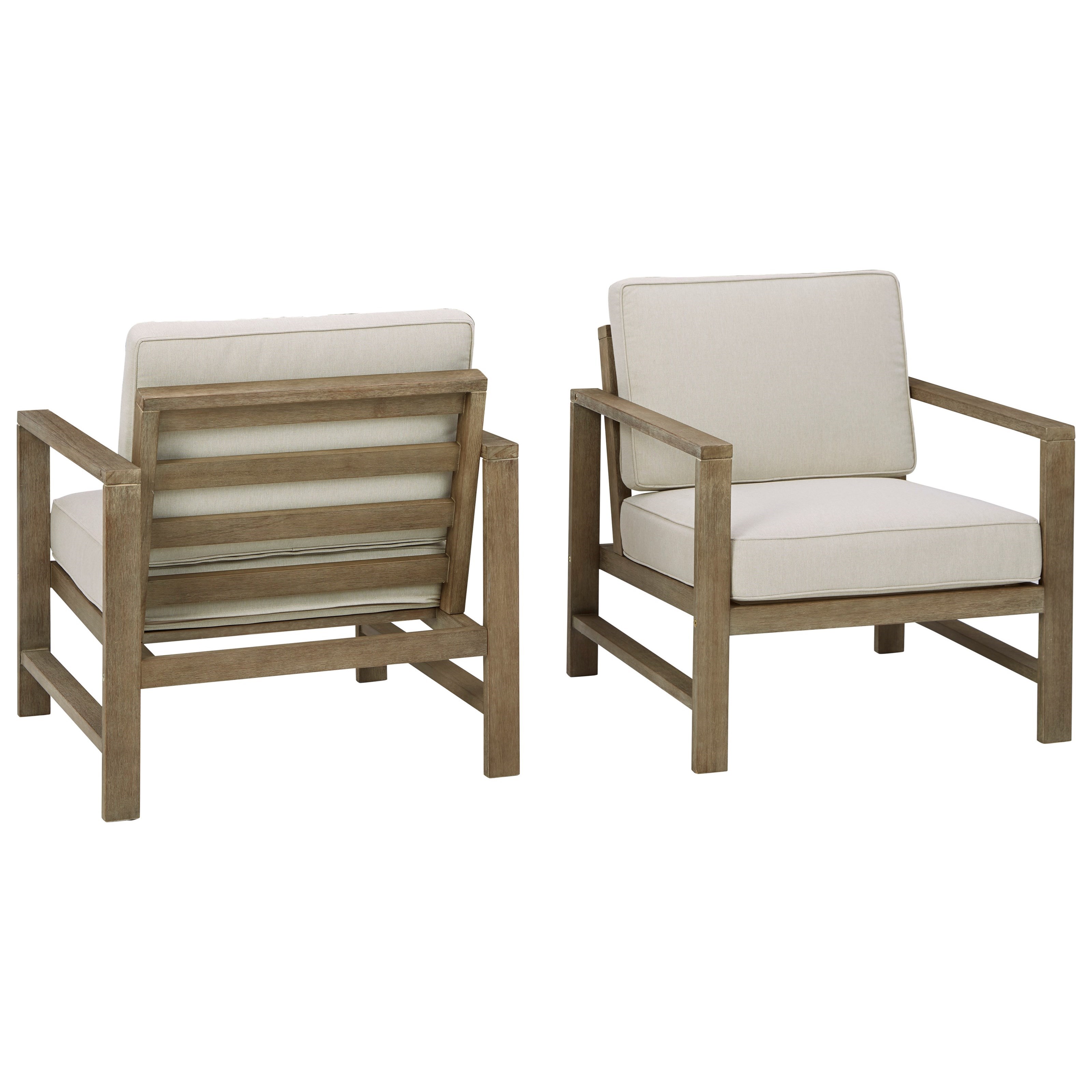 Signature Design By Ashley Fynnegan P349 820 Set Of 2 Eucalyptus Wood Lounge Chairs W Cushion Household Furniture Outdoor Upholstered Chairs